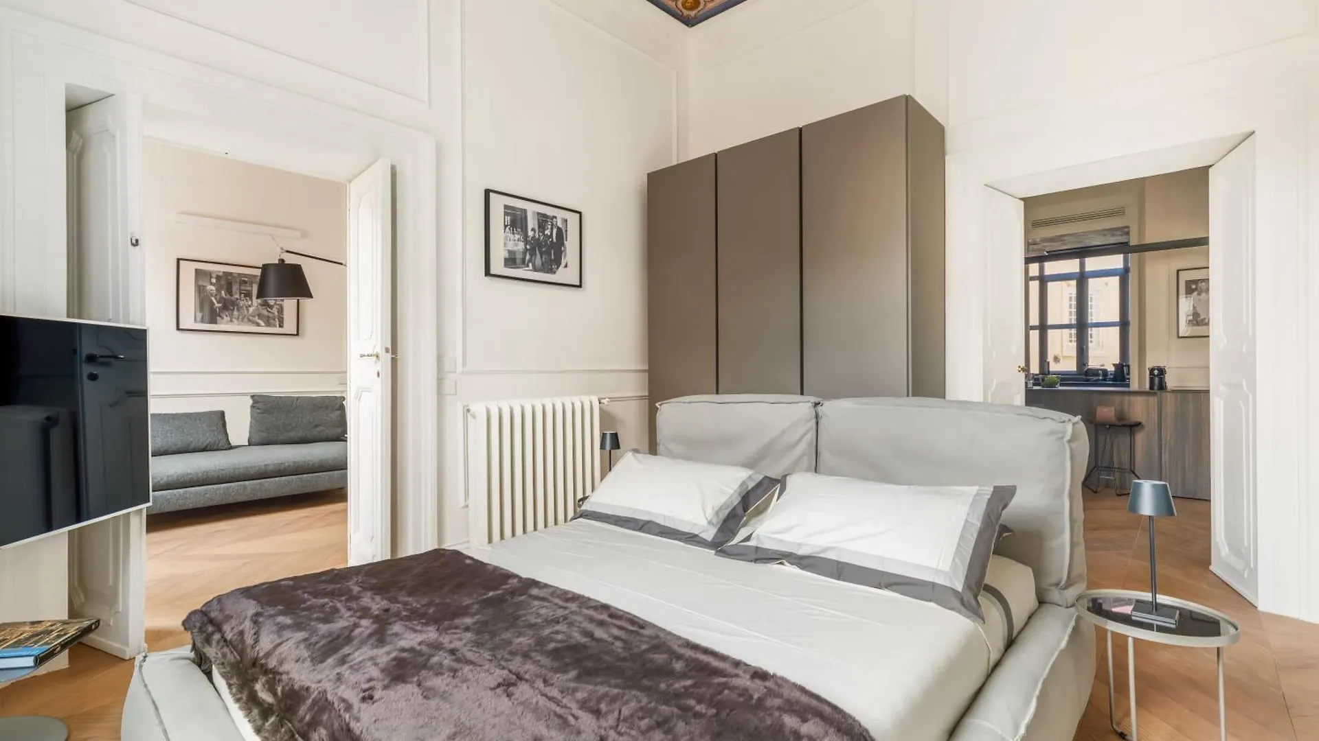 Das Apartment bietet Ausstattung zur Kaffee- & Teezubereitung sowie eine komplette Küche mit einer Mikrowelle, einer Kaffee-/Teemaschine und Küchenutensilien an. Dieses Apartment ist direkt neben der Bushaltestelle Corso/Minghetti.